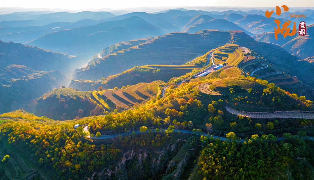 溝溝岔岔,塬上嶺下,既有秋的黃花紅葉,又有冬的寂靜寒意,猶如披上彩衣,分外美麗。