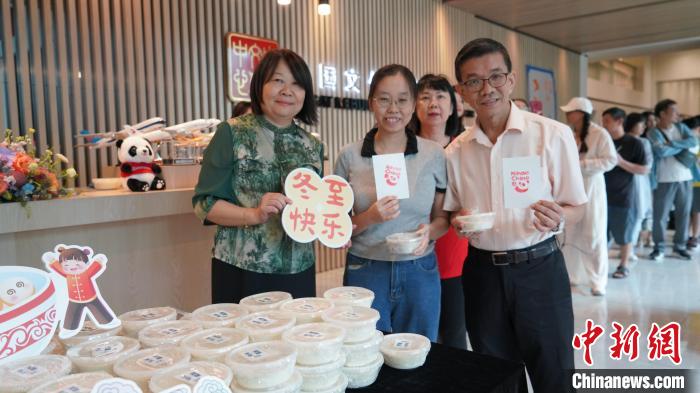 吉隆坡中國(guó)文化中心主任韓寧(左一)為民眾派發(fā)冬至湯圓。吉隆坡中國(guó)文化中心 供圖