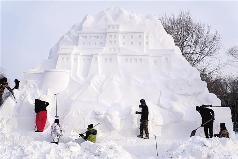 正在施工中的棲云小鎮(zhèn)雪雕