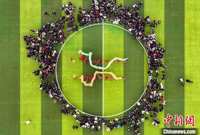 圖為學(xué)生在老師的帶領(lǐng)下舞龍。胡攀學(xué) 攝
