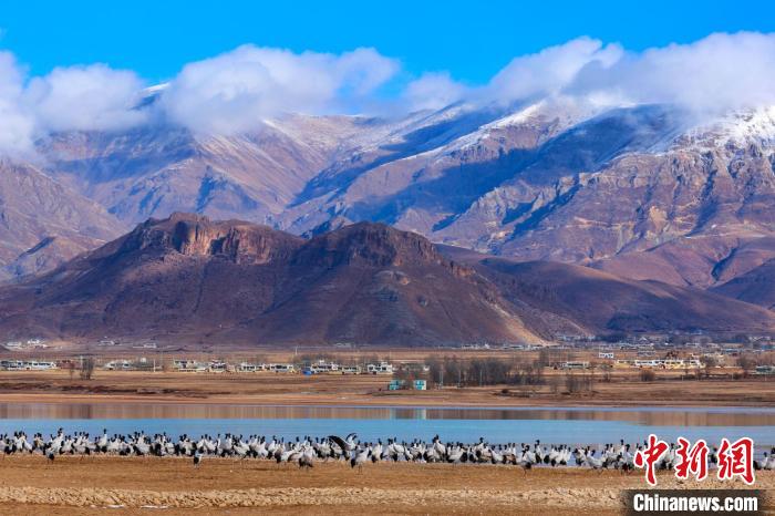 圖為2月21日,在拉薩市林周縣越冬的黑頸鶴群。益西旦增 攝