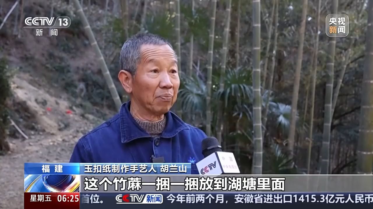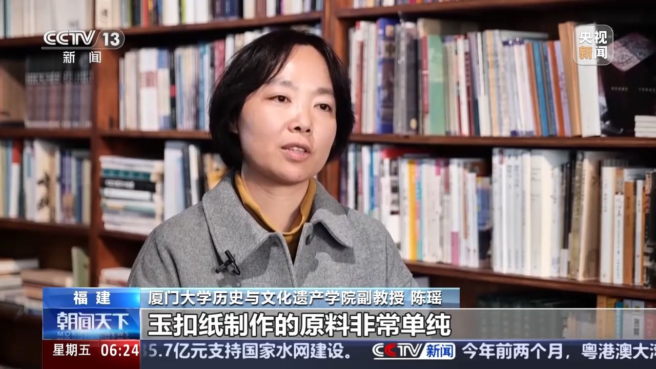 廈門大學(xué)歷史與文化遺產(chǎn)學(xué)院副教授 陳瑤:玉扣紙制作的原料非常單純。就是三種,一個是竹子嫩竹,第二個是石灰,第三個就是清潔的山泉水。基本上是純靠人工來進(jìn)行品質(zhì)的管控。