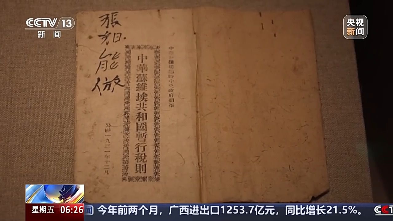寧化縣革命紀(jì)念館講解員 邱小紅:《中華蘇維埃共和國暫行稅則》是赤色中國的第一部稅法,我館所展示的這本保存完整。它的封面采用的就是寧化玉扣紙。