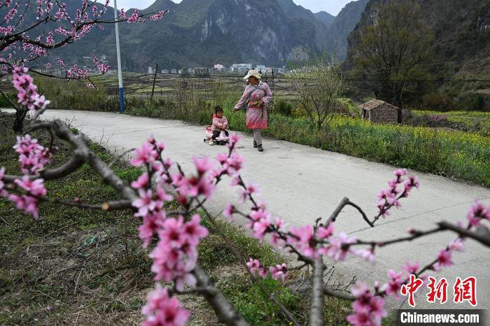 時(shí)下正是桃花盛開(kāi)的時(shí)節(jié),在廣西田林縣浪平鎮(zhèn)浪平村,村民種植的桃花競(jìng)相綻放。滿樹(shù)繁花與錯(cuò)落村舍相互映襯,還有樹(shù)旁玩耍的孩童、樹(shù)下勞作的村民,動(dòng)靜交織,構(gòu)成一幅絕美的田園春景圖。圖為3月15日,在廣西田林縣浪平鎮(zhèn)浪平村,村民在桃樹(shù)下勞作。黃數(shù)情 攝