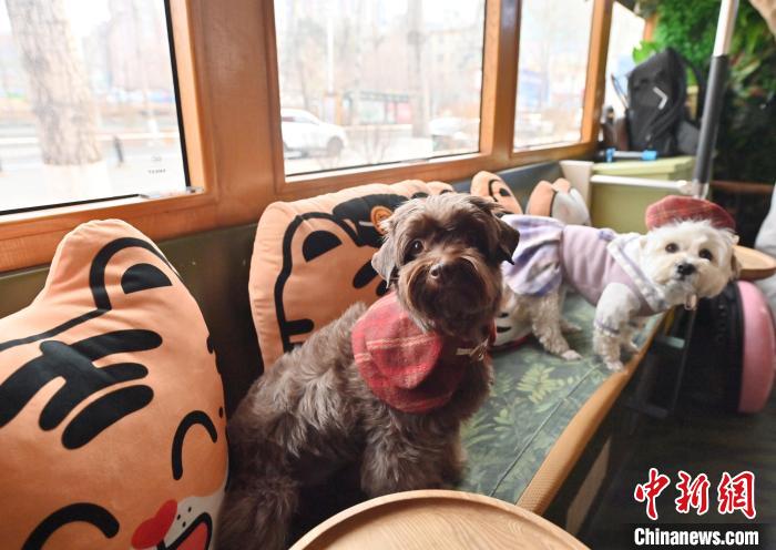3月16日,吉林長(zhǎng)春,寵物們?cè)谲噹麅?nèi)親密互動(dòng)。中新社記者 張瑤 攝