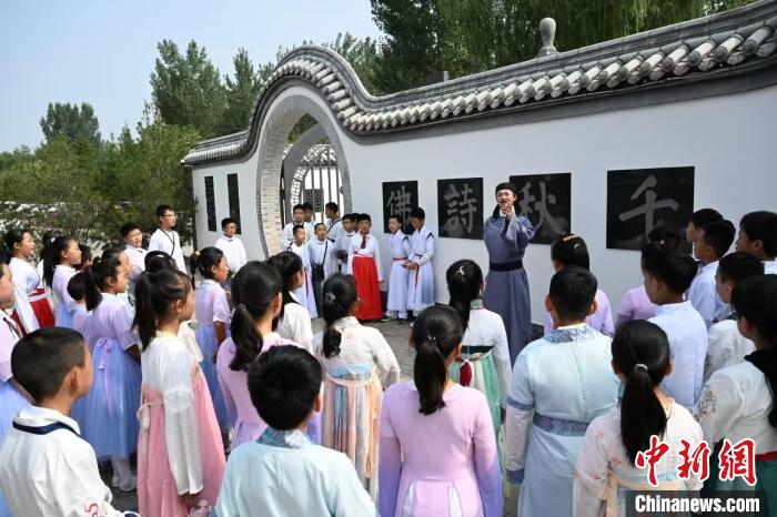來自省內(nèi)外的學(xué)生在王維水墨小鎮(zhèn)參加研學(xué)活動。(資料圖片) 吳遵民 攝