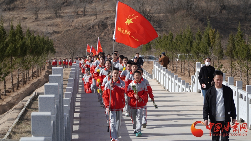 此次大型網(wǎng)絡(luò)思政公開課《永遠(yuǎn)不會忘記》由甘肅省委宣傳部、甘肅省委教育工委、甘肅省公安廳、甘肅省退役軍人事務(wù)廳共同主辦,線下開展“清明祭英烈 重走長征路”思政教育主題實踐活動。內(nèi)容主要是圍繞“陜甘邊革命根據(jù)地創(chuàng)建、兩當(dāng)兵變、蘭州戰(zhàn)役、血戰(zhàn)高臺、會寧會師”等主題打造5條省級示范線路,蘭州、張掖、白銀、慶陽、隴南等地的2500余名學(xué)生同時開展徒步拉練、紅歌聯(lián)唱、黨史問答、祭奠瞻仰、參觀體驗等活動。