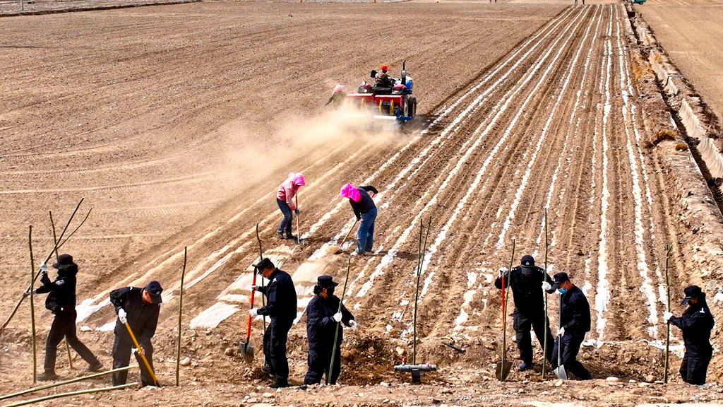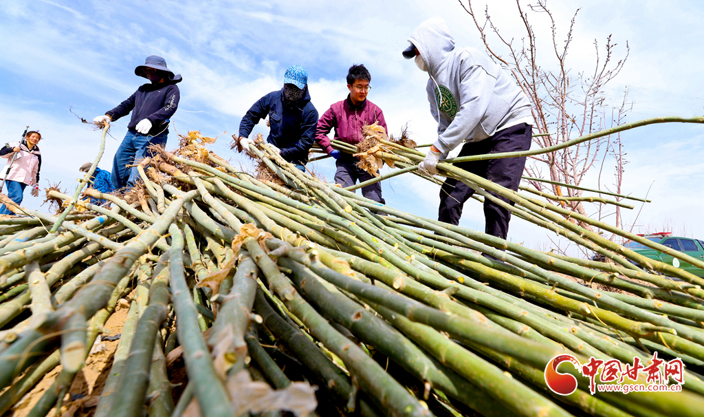 4月10日,張掖市甘州區(qū)開展2025年春季義務(wù)植樹暨農(nóng)田防護林建設(shè)活動。1300多名干部職工和志愿者們共同參與,栽植新疆楊、河北楊、梨等鄉(xiāng)土樹種1.2萬株,致力于建成長18公里,寬3米的高標準農(nóng)田格化防護林網(wǎng),將覆蓋保護7846畝農(nóng)田。