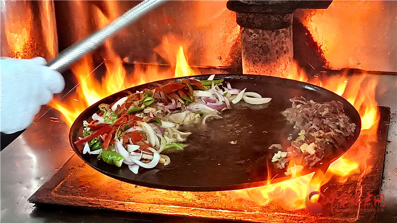 后來這種烹飪方式漸漸被當(dāng)?shù)匕傩諏W(xué)會(huì)并加以改良,以牛、羊雜為主要食材,放在鐵鏊子上炒制,山丹炒撥拉由此而來。