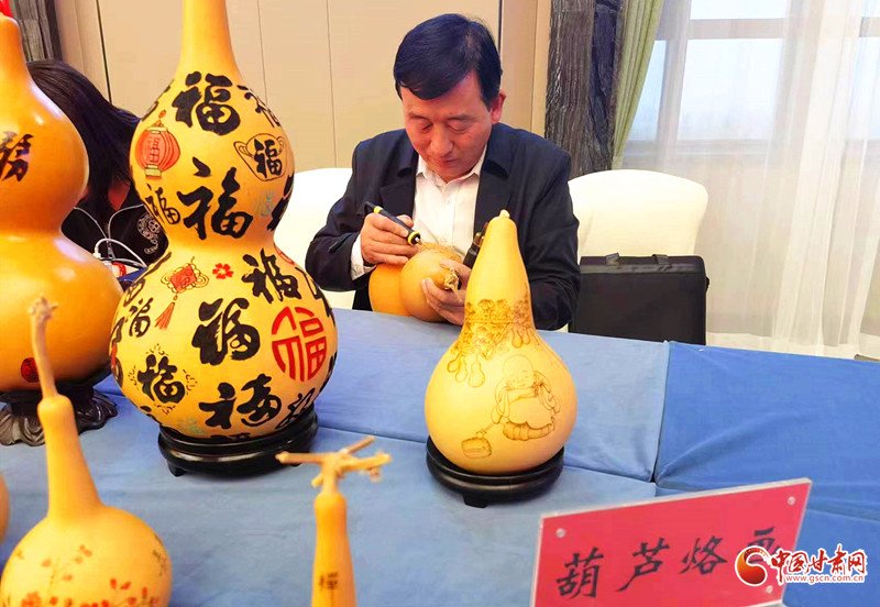 葫蘆諧音“福祿”,寓意平安吉祥、健康長壽。經(jīng)過多年的堅(jiān)持和努力,賈永飛創(chuàng)作了一批成熟的烙畫葫蘆作品,2015年賈永飛被評為張掖市非物質(zhì)文化遺產(chǎn)代表性傳承人。