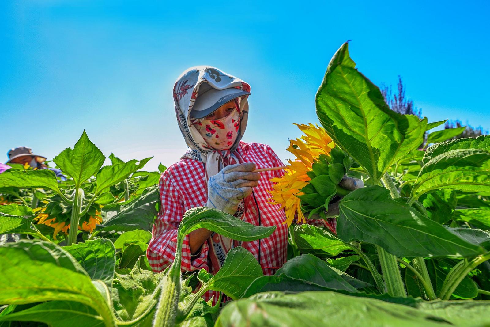 中國甘肅網(wǎng)7月14日訊 據(jù)嘉峪關(guān)日報報道(融媒體中心記者 李巍 攝)近日,嘉峪關(guān)市新城鎮(zhèn)野麻灣村“千畝”制種向日葵迎來盛花期,朵朵花盤匯聚成金色花海,放眼望去,與雪山相融、與藍(lán)天相接,如詩如畫,美不勝收。