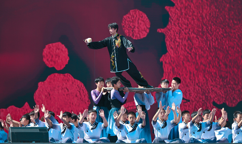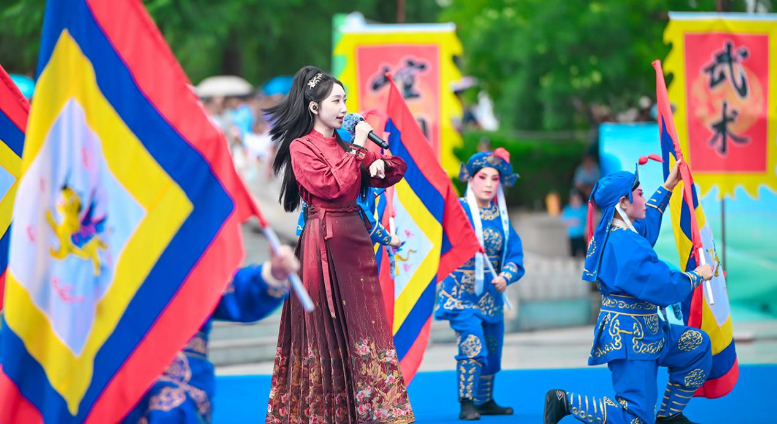 活動伊始,開場片《歡迎乘坐崆峒號》以“環(huán)西部火車游·崆峒號”平?jīng)雎糜螌A袨殪`感,通過跨時空對話串聯(lián)崆峒山古今脈絡(luò),拉開活動序幕?,F(xiàn)場,街舞與崆峒武術(shù)團(tuán)體合作的《武韻崆峒》展現(xiàn)武術(shù)與現(xiàn)代肢體藝術(shù)新生機(jī);笛子演奏與武術(shù)冠軍聯(lián)袂呈現(xiàn)的《崆音劍影》打造“可聽的武術(shù)”沉浸式體驗(yàn);30人陣容的江蘇武協(xié)女子太極拳團(tuán)體演繹《鶴起崆峒》,詮釋武術(shù)新功用;國風(fēng)歌手與秦腔表演藝術(shù)家合作的《秦韻長歌》,展現(xiàn)“武戲同源”的多元魅力。