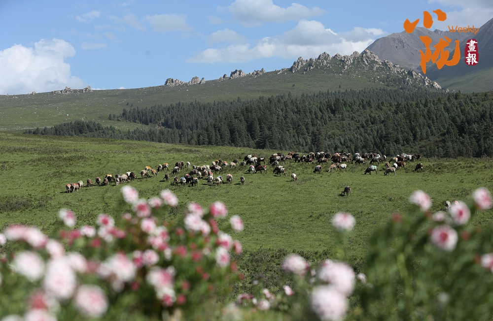 祁連下的康樂草原,是肅南裕固族人生活的地方。這里風(fēng)光秀美,山地高原交相呼應(yīng),丘陵漫甸連綿起伏。放眼周圍,遠(yuǎn)處祁連山巍峨挺拔,近處樹木郁郁蔥蔥,優(yōu)美壯觀。