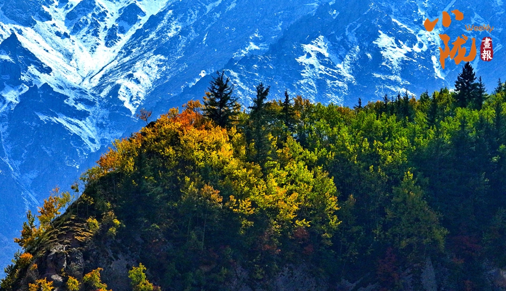秋風(fēng)吹過(guò),祁連山的原始森林悄然換裝。黃綠交織,紅金點(diǎn)染,仿佛大自然執(zhí)筆揮灑的油畫,靜謐而熱烈。尤其是在陽(yáng)光的照耀下,與遠(yuǎn)處的雪山和湛藍(lán)的天空、潔白的云朵,形成鮮明的對(duì)比。