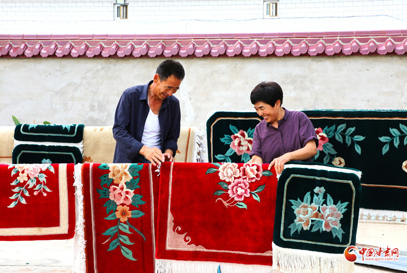 手工地毯,是環(huán)縣非物質(zhì)文化遺產(chǎn)之一,已有近半個世紀(jì)的傳承,慕粉萍從事這項技藝也有30多年了。