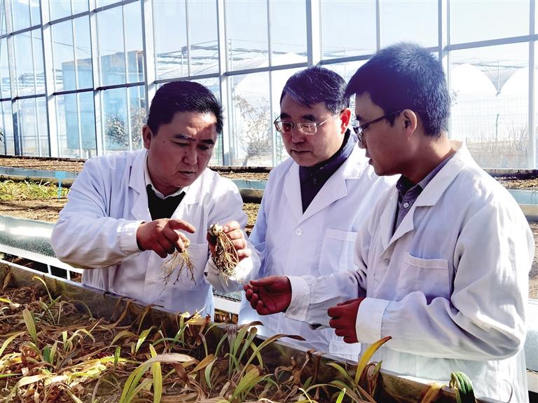 蘭州百合優(yōu)質種源高效開發(fā)關鍵技術“揭榜掛帥”項目承擔方查看百合生長情況