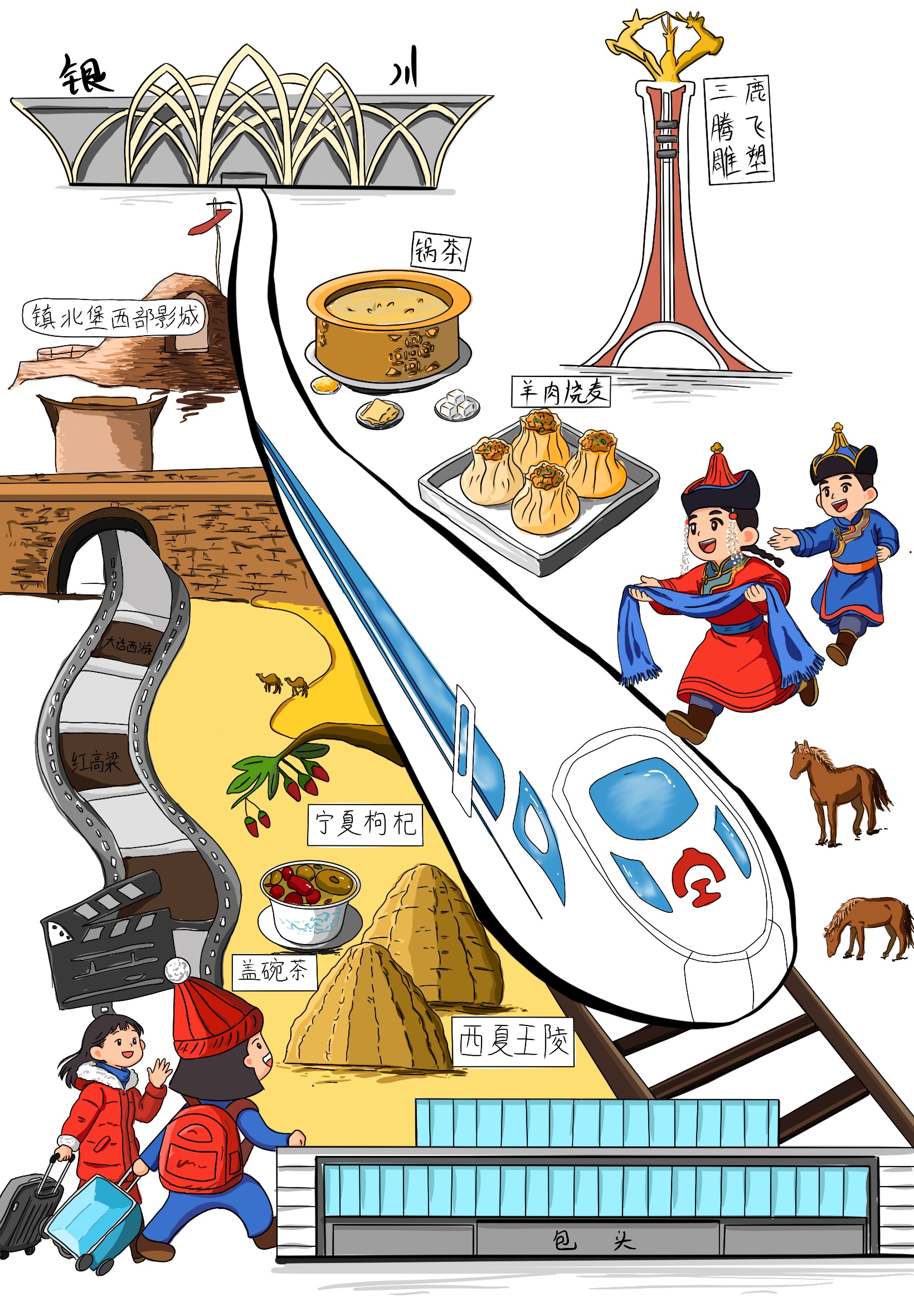 不負山河浩蕩,不負星河燦爛。這條貫穿西北的鋼鐵巨龍,不僅是一條便民出行的快捷線,更是助力發(fā)展的經(jīng)濟線、促進交流的文化線。無論是由此帶來的沿線旅游、產(chǎn)業(yè)、就業(yè)的發(fā)展,還是鐵路企業(yè)自身建設,都將呈現(xiàn)出勃勃生機,為西北大地帶來更多的發(fā)展活力與無限可能。面向“十五五”,包銀高鐵必將推動沿線經(jīng)濟社會發(fā)展駛?cè)?ldquo;快車道”,在新征程上續(xù)寫更輝煌的篇章。(文字:陳浩媛  漫畫:李雨晴,朱雪菲)