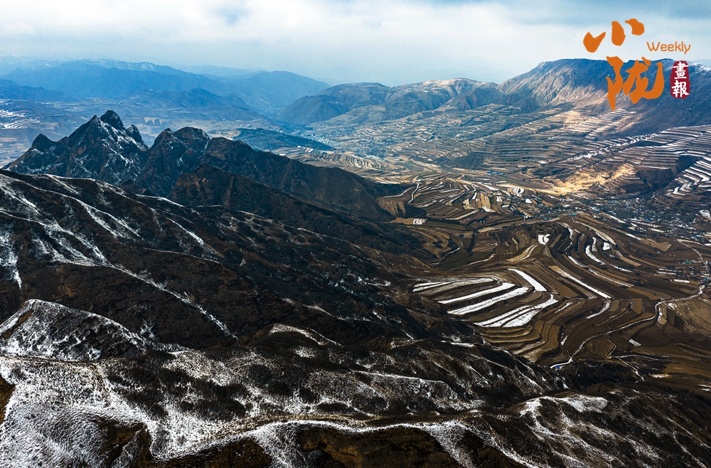 雪落在陡峭的崖壁上,落在圓潤(rùn)的山頂上,落在深邃的溝壑里。紅的更紅,白的更白,仿佛是大地披上了婚紗,要在春天里完成一場(chǎng)盛大的婚禮。
